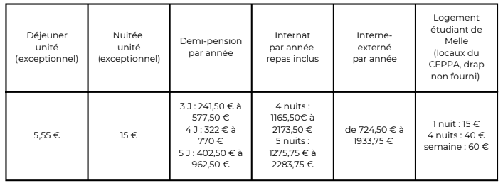 Pour les étudiant(e)s en BTSA, un hébergement est possible (selon places disponibles). Certain(e)s étudiant(e)s peuvent devenir maîtres au pair, ce qui permet de financer les études moyennant quelques heures de surveillance pour l'établissement.